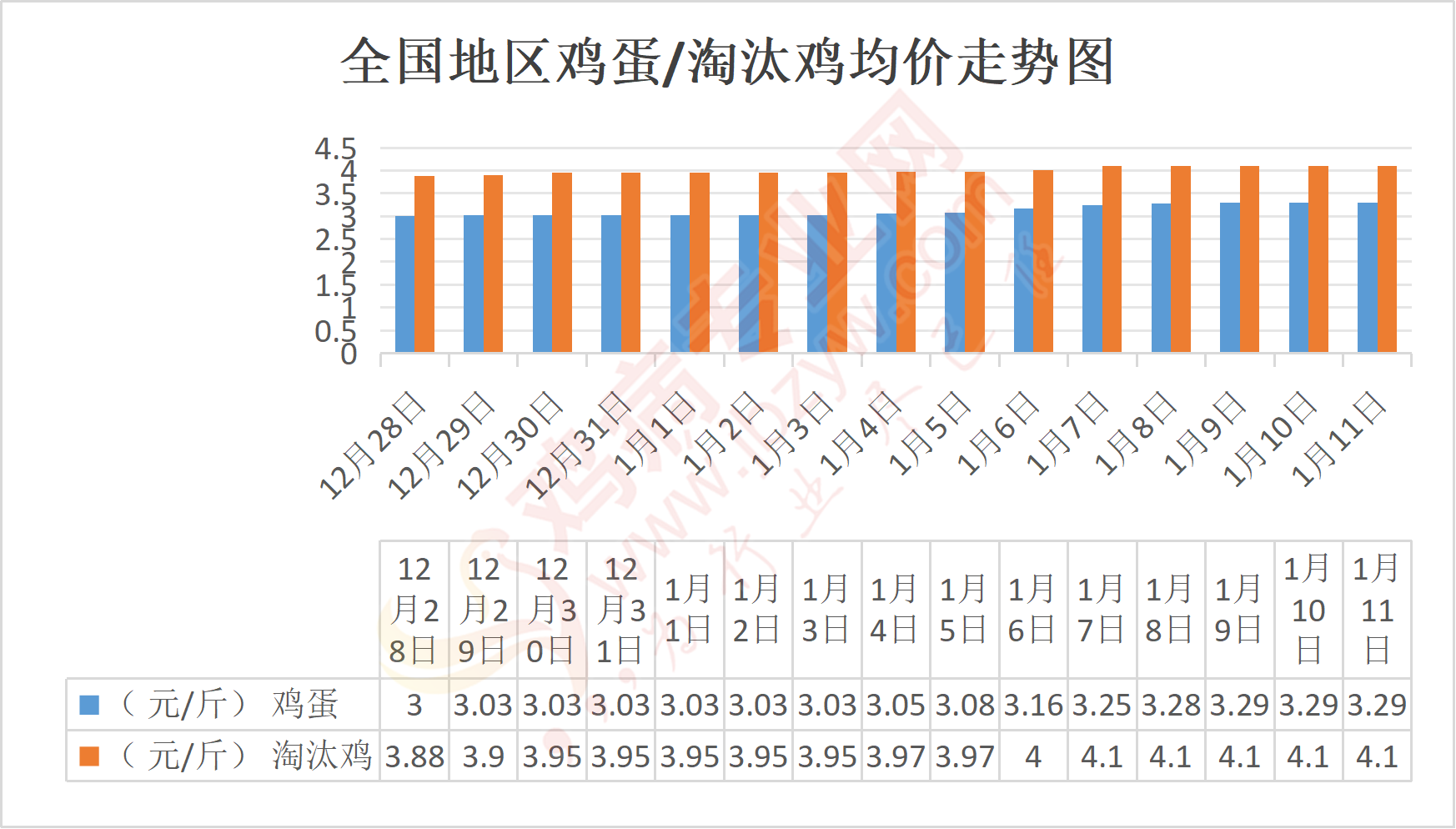 河北地区:石家庄鸡蛋3.11元/斤,与昨日相比持平,淘汰鸡3.8-4.4元/斤;